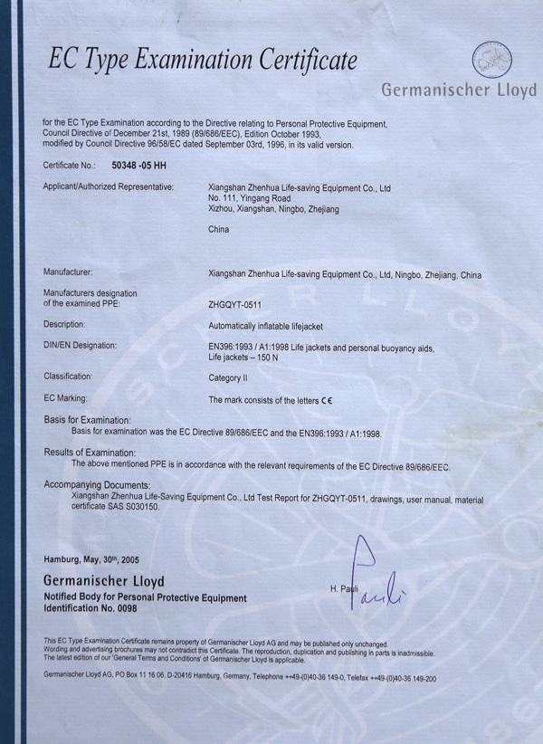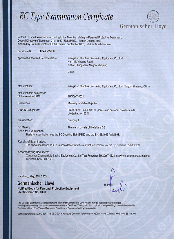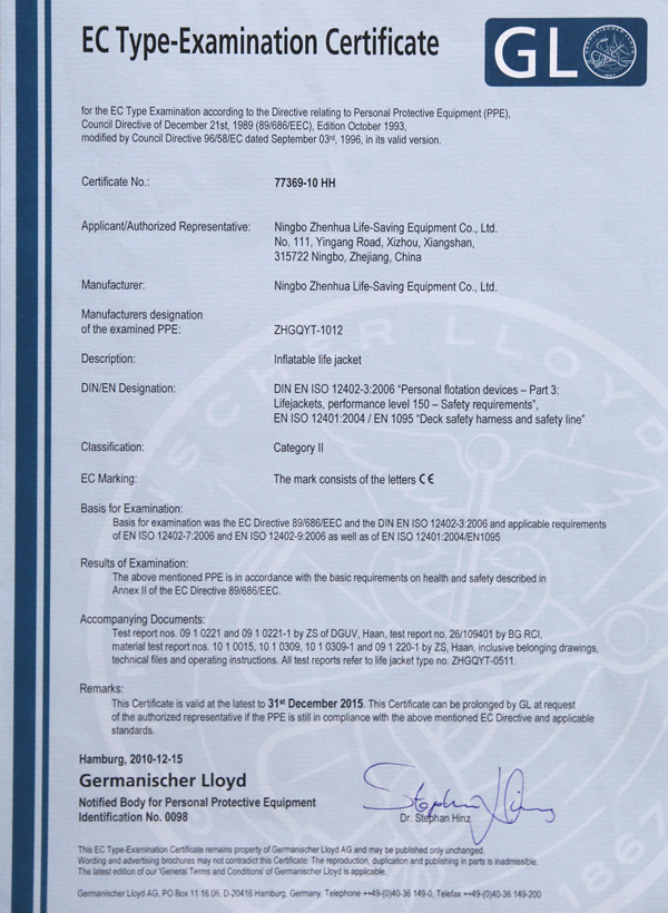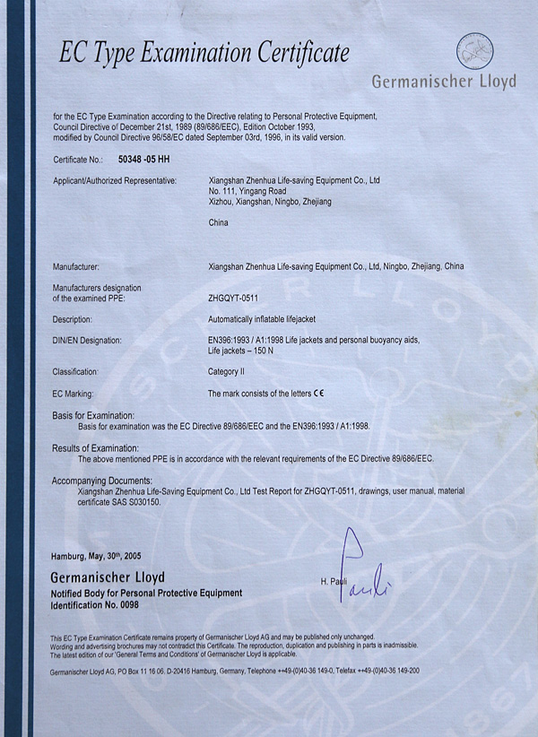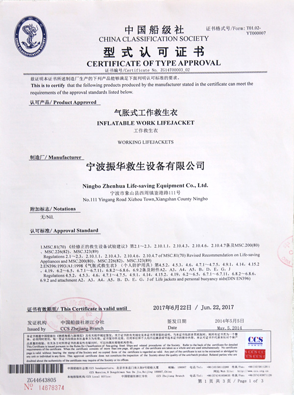 Pilot Suit Opblaasbare Werkreddingsbaadjie